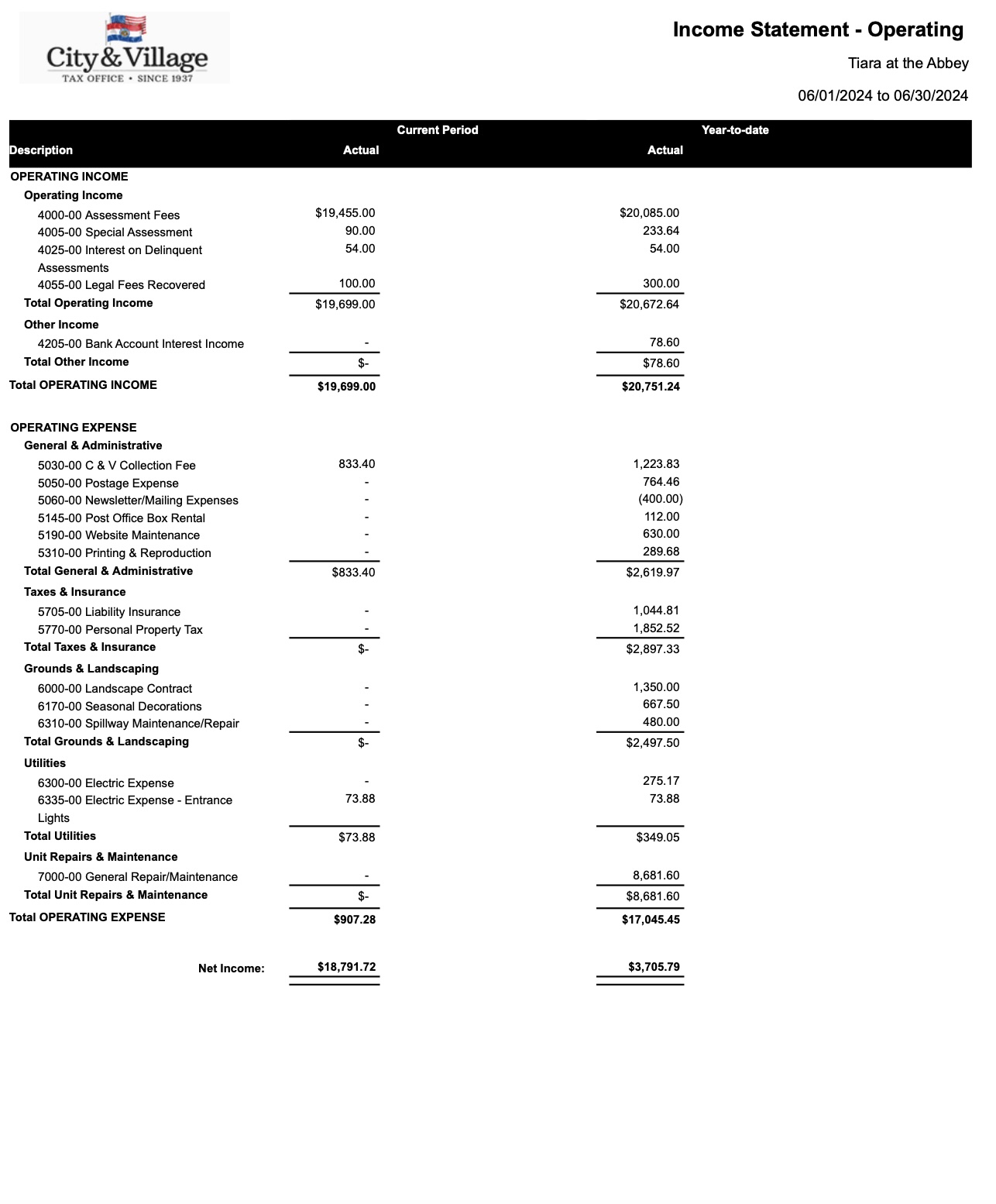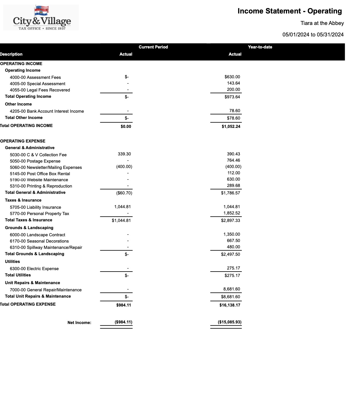 Tiara at the Abbey 2024 Expenditures